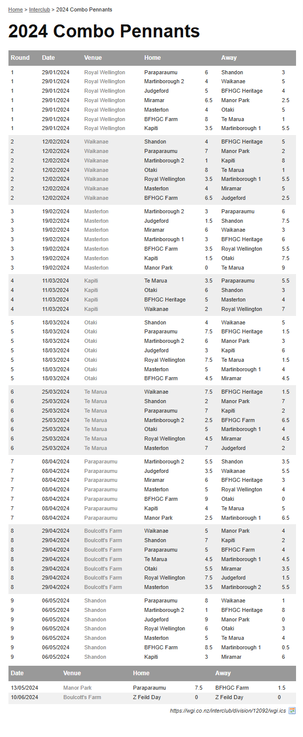 Teams: Martinborough 2 Vs Bfhgc Farm