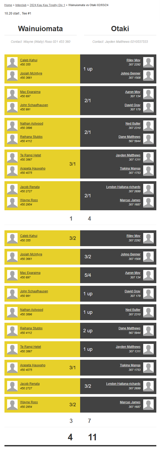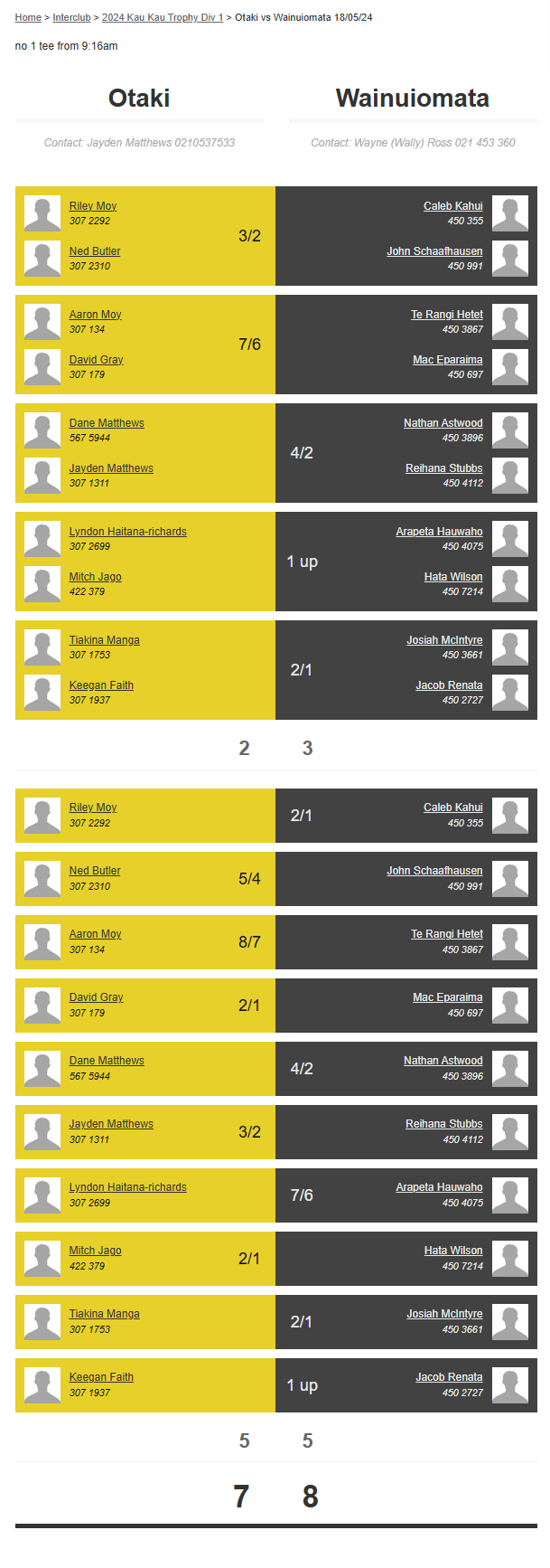 Teams: Otaki Vs Wainuiomata