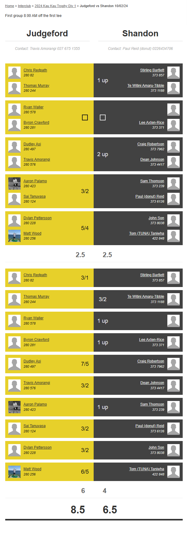 Teams: Judgeford Vs Shandon