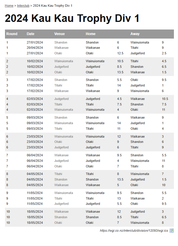 Teams: Titahi Vs Otaki