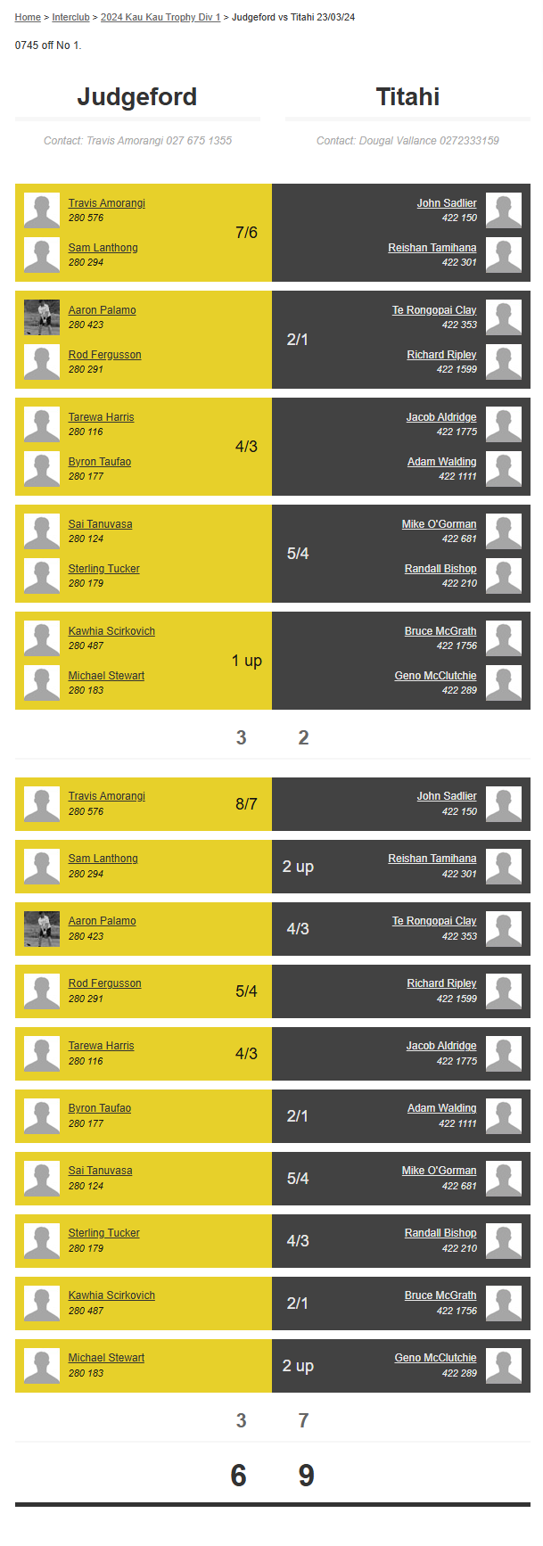 Teams: Judgeford Vs Titahi