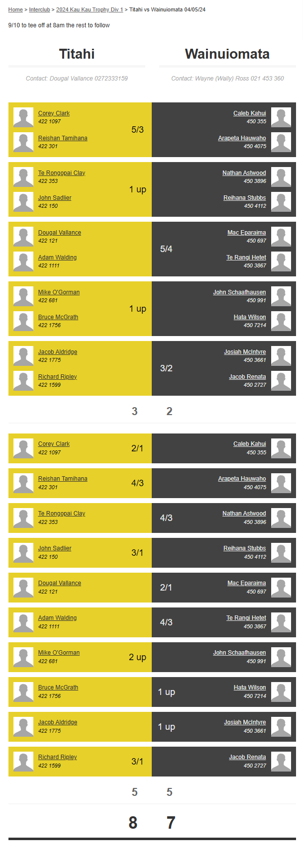 Teams: Waikanae Vs Titahi