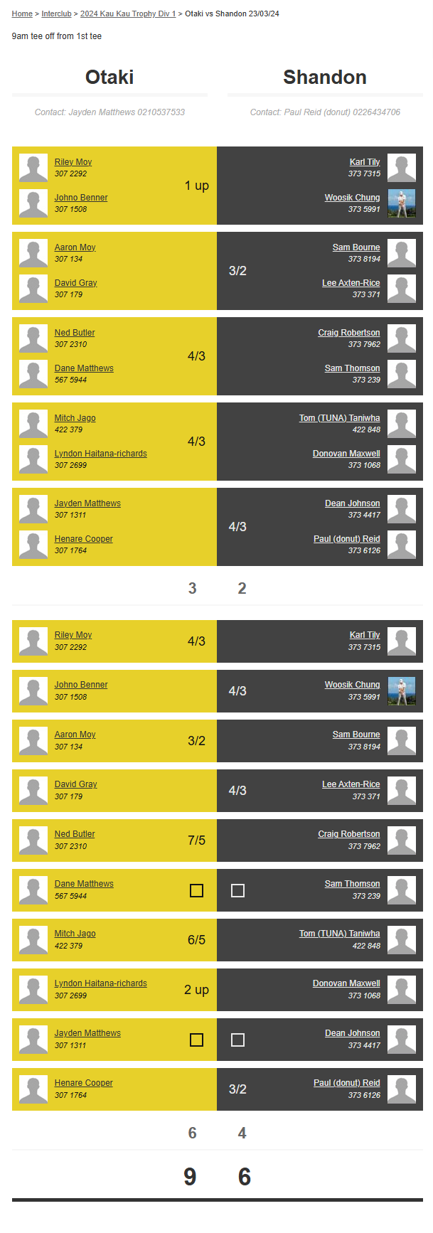 Teams: Shandon Vs Otaki