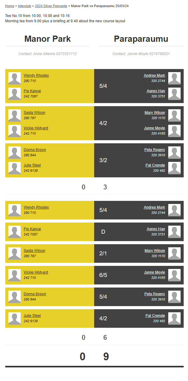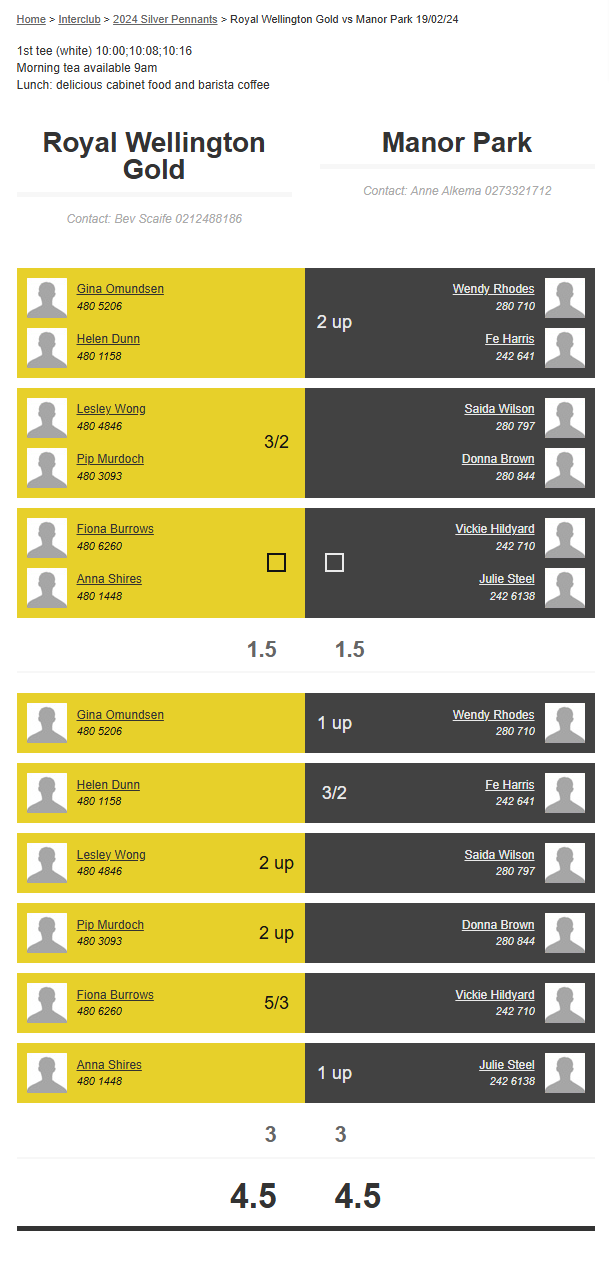 Teams: Paraparaumu Vs Royal Wellington Gold