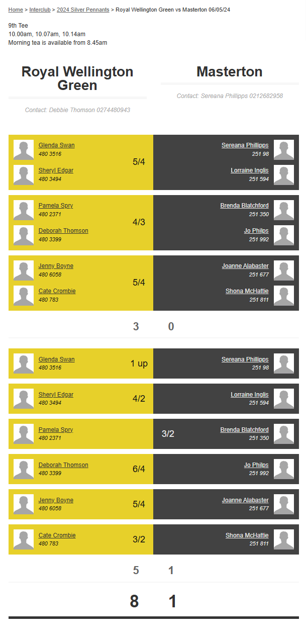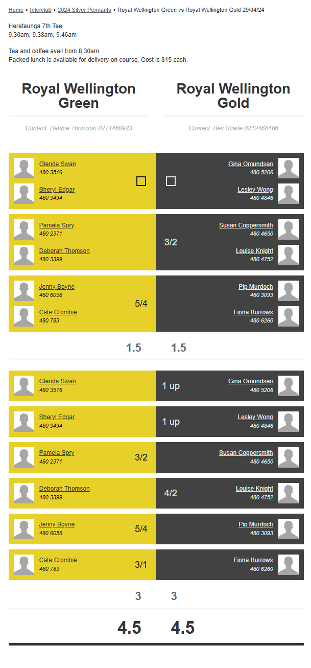 Teams: Royal Wellington Green Vs Royal Wellington Gold